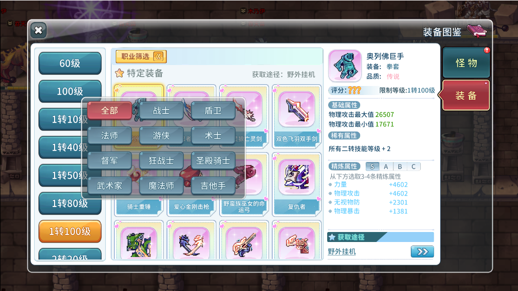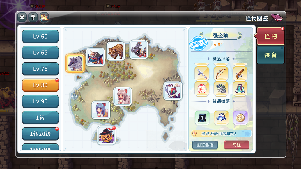 3.怪物图鉴下有对应怪物等级、所在位置以及掉落的装备材料,方便玩家挂图!