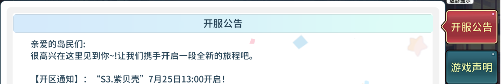 【开区通知】:“S3.紫贝壳”7月25日13:00开启!