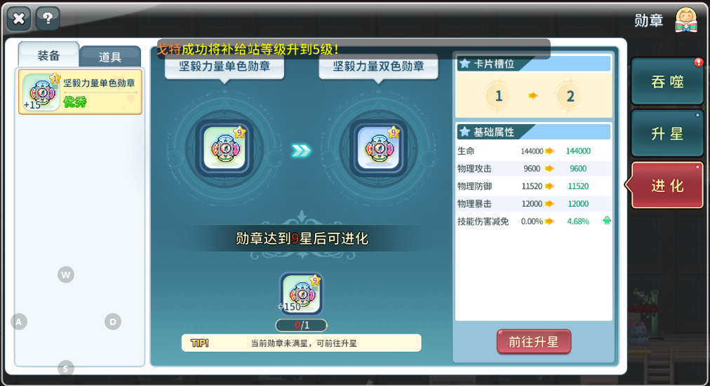 1.装备在身上的勋章和背包内的勋童。均可进行勋章进化; 2.勋章进化需要自身达到对应星级,并且需要完全符合条件的勋章素材; 3.勋章进化后,用作素材的勋章完全消失,材料不作返还。