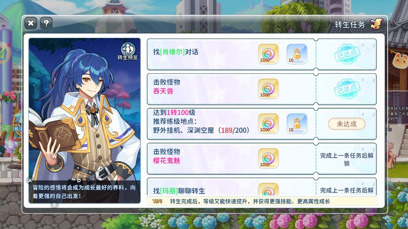 永恒岛高清重置版:《爱丽丝之境》二转转生介绍!在永恒岛手游高清重置版爱丽丝之境当中,等级提升是比较迅速的,之前说过一转的攻略,今天给大家介绍一下,二转的一些详细内容! 因为小编玩的是督军,今天就以督军为例,其他职业也大不差。1.完成转生主线任务(这个都是很日常的,完成起来很简单)2.转生最后一步要卸掉武器跟盾牌,不然转生不了。
