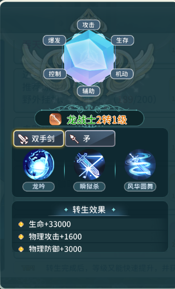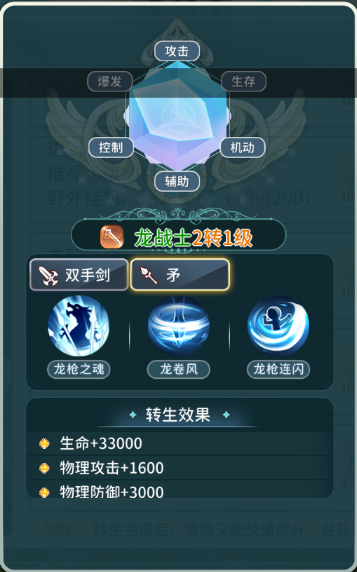 1.每100级都需要通过完成不同的转生任务以完成转生; 2.转生后等级上限增加100级; 3.转生可带来:完全不同的职业体验、更强技能学习资格某些技能的特殊加强及特效变化、更高的属性成长已经完成转生后一次性的大量属性; 4.可通过点击转生预览查看每次转生的方向; 5.每次转生后都会重置已学习技能,因遗忘技能可能导致评分暂时降低。 督军二转示意图:
