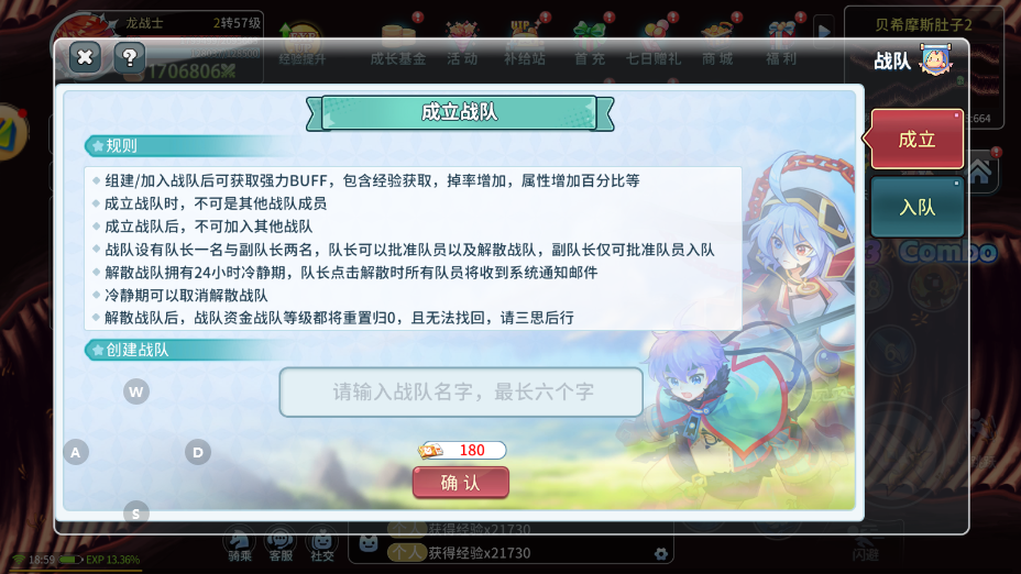 玩法介绍: 1.战队组建后,队长可以任命副队长,每个战队可以拥有2名副队长; 2.副队长和队长均可以操作审批人员; 3.移出人员需要除队长与被移出成员以外的人员进行投票,均同意后成员将被移出战队; 4.投票时间为24小时,24小时不进行投票操作默认为同意; 5.被移出成员在投票时间可以自由进行退队操作,不受影响; 6.战队等级提升后对应的战队技能将获得等级提升,战队商城可兑换的物品也将增加; 7.战队排行榜优先级,战队等级,战力,如相同,优先达到的战队排名更高; 8.主动退出战队后,再次申请加入战队有1小时冷却时间,被踢出战队的成员没有冷却时间。 |